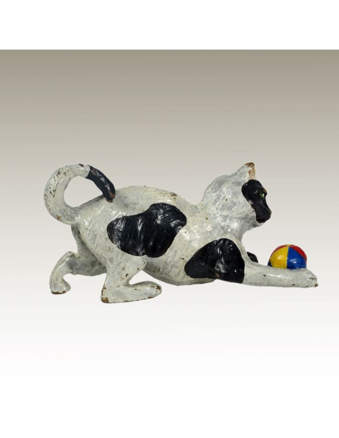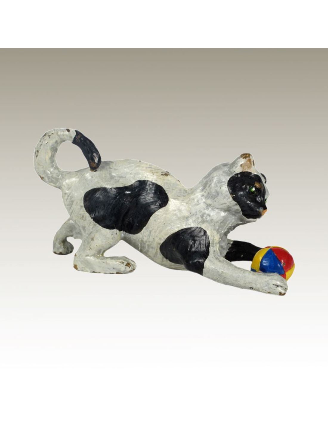 Gato jugando con una pelota pintado estilo Viena en Bronce a la cera perdida