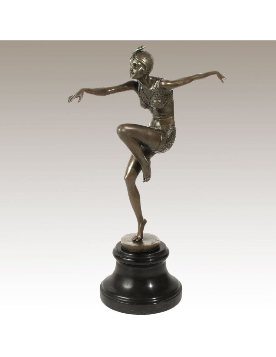 Femme Art déco "Pas de danse" -Patine brune en Bronze à la cire perdue
